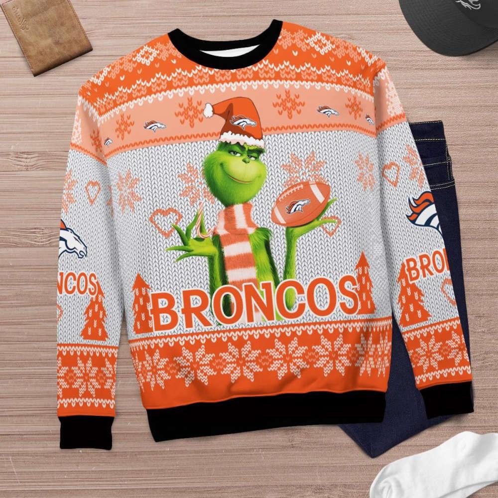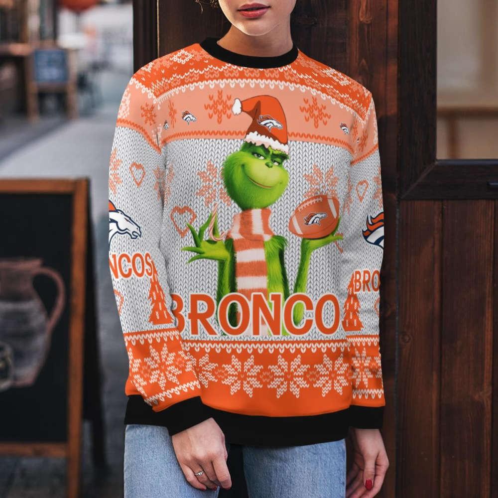 Denver Broncos The Grinch Christmas AOP Ugly Sweater information: