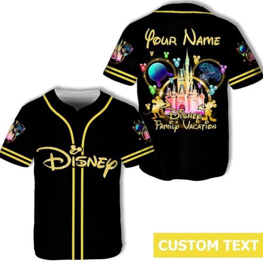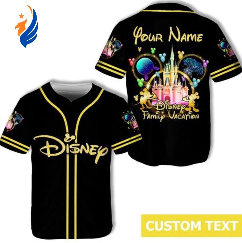 Custom Mickey Mouse Family Vacation Baseball JerseyPersonalized Cartoon Design Information