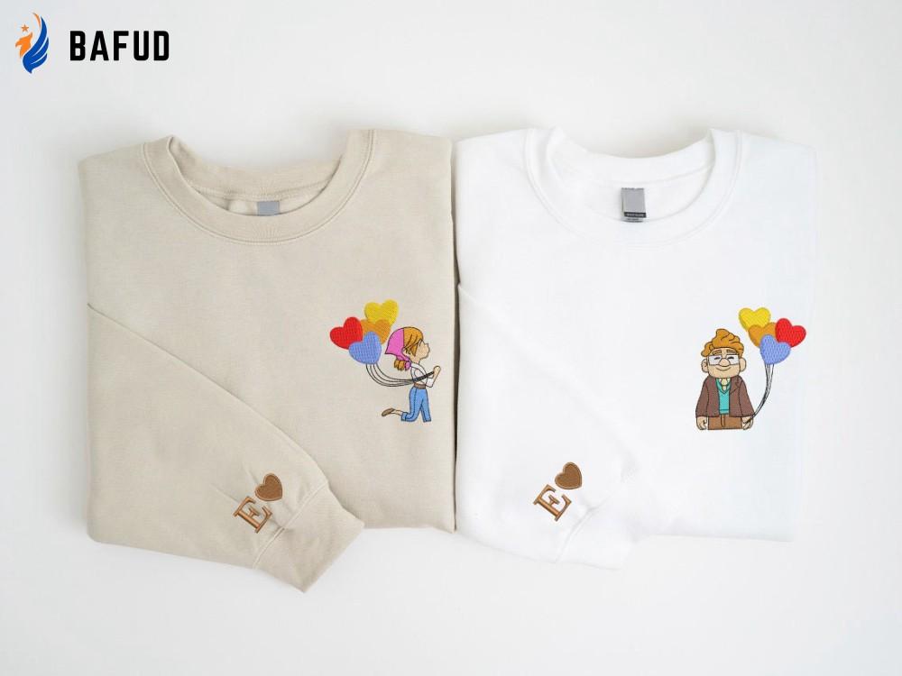 Introducing our His Ellie and Her Carl Embroidered Sweatshirt, a perfect union of style and love! Made from premium quality fabric, this sweatshirt boasts intricate embroidery of Ellie and Carl, capturing their timeless love story. Its cozy and comfortable fit ensures a snug feel, perfect for those chilly evenings together. The Valentine Cartoon Up Balloon Shirt is a delightful addition to your wardrobe, featuring a cute couple floating away on heartshaped balloons. Made with love and attention to detail, this shirt is not only fashionable but also brings a touch of romance to your outfit. Complete your Valentine's Day look with our Pink Valentine Up Balloon Couple Shirt. Its vibrant pink hue and captivating design make it an ideal choice for celebrating love. Crafted with care, this shirt offers a comfortable fit and is perfect for both casual outings and special occasions. Fall in love with our couple shirts and let them be an emblem of your unique bond. These shirts make a thoughtful gift, allowing you and your partner to express your love and create lasting memories together. Elevate your style and showcase your love story with our His Ellie and Her Carl Embroidered Sweatshirt, Valentine Cartoon Up Balloon Shirt, Pink Valentine Up Balloon, Couple Shirt.