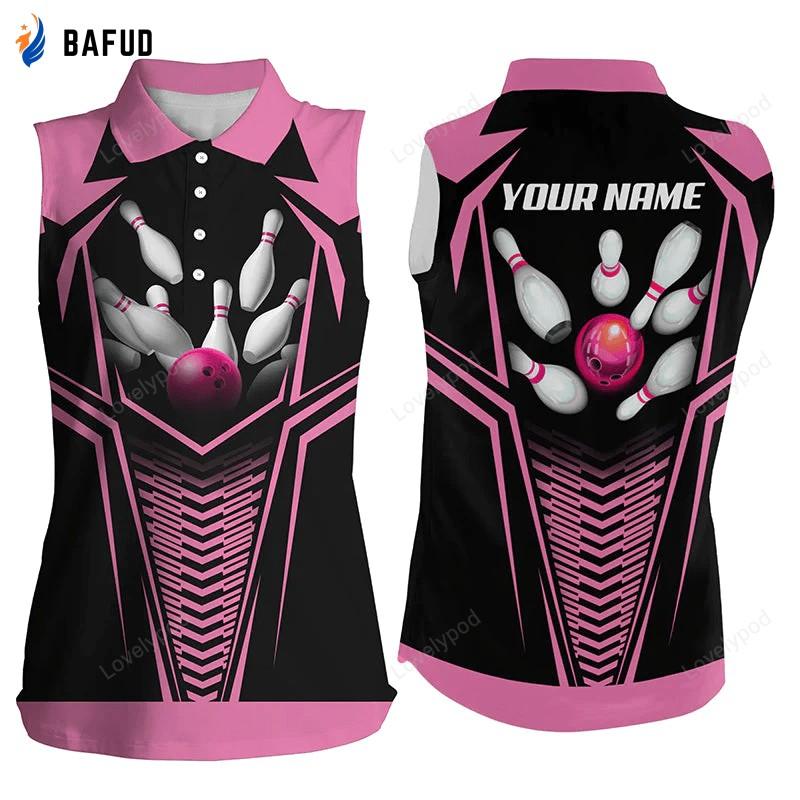 Introducing our Flame Bowling Ball & Pins sleeveless polo Shirt for Women, the ultimate choice for stylish bowlers! Designed to elevate your bowling experience, this personalized bowling team jersey combines comfort, functionality, and a touch of flair to make you stand out on the lanes.