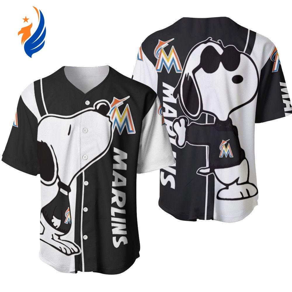 The Miami Marlins Snoopy Lover Printed Baseball Jersey is the perfect gift for both women and men who are fans of the team and love Snoopy. Made from high-quality materials, this jersey is comfortable and durable. The vibrant print of Snoopy wearing the Marlins logo adds a fun and unique touch. Whether you're heading to a game or simply want to show off your team spirit, this jersey is a must-have. It offers a stylish way to support your favorite team and showcase your love for Snoopy. Get yours today and stand out from the crowd!