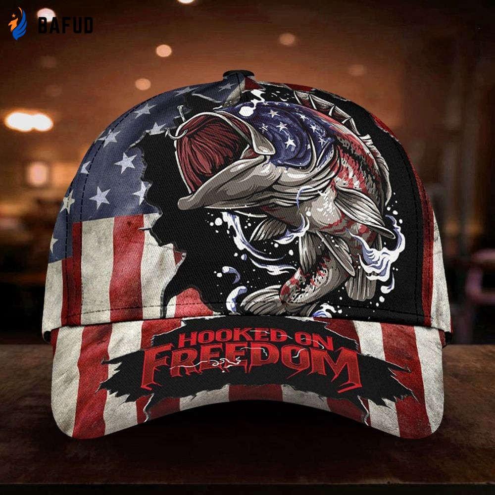 Fish Hooked On Freedom American Flag Classic Cap Patriotic Independence Day Fishing Lover Gift