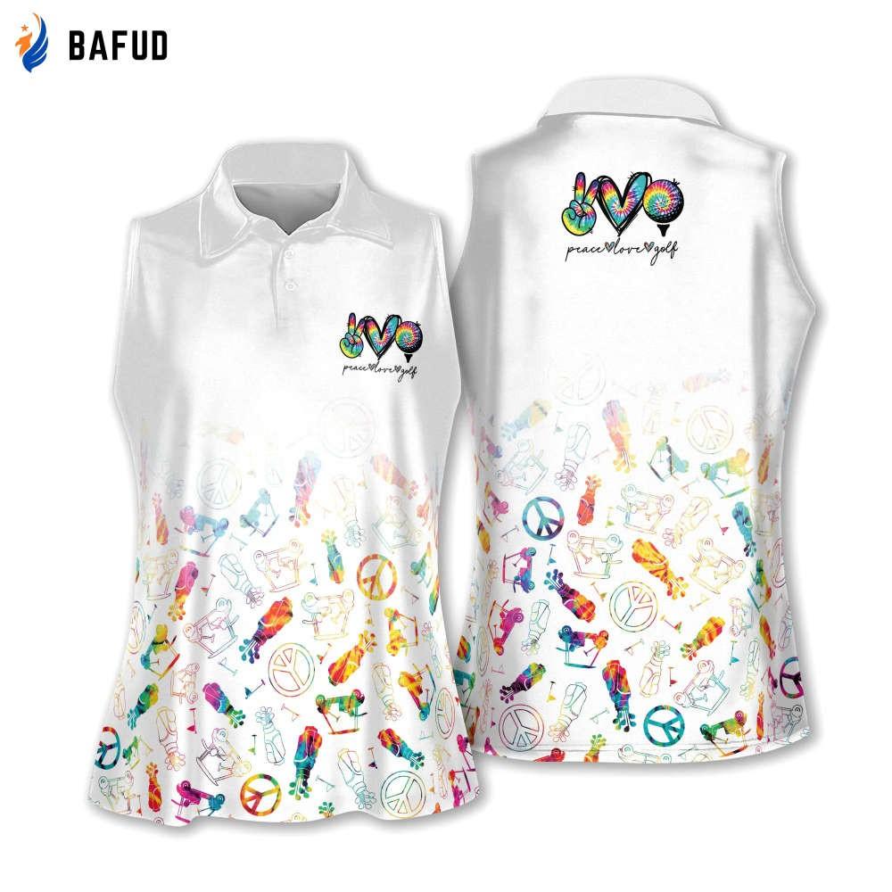 Golf And Hippie Women Sleeveless Athleisure Polo Shirt, Peace Love Golf Tie Dye Polo Shirt - Gift For Mother's Day, Golfers, Female