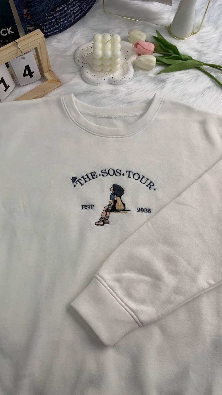 The SOS Tour 2023 Embroidered Crewneck Sweatshirt is a musthave for men and women who love comfort and style. Made with premium quality fabric, this sweatshirt offers a cozy and warm feel. The embroidered SOS Tour 2023 design adds a trendy and unique touch to your outfit. Whether you're attending a concert or simply lounging at home, this sweatshirt is perfect for any occasion. Stay fashionable while showing your support for the SOS Tour 2023. Don't miss out on this limited edition piece! Get yours now and be part of the movement.