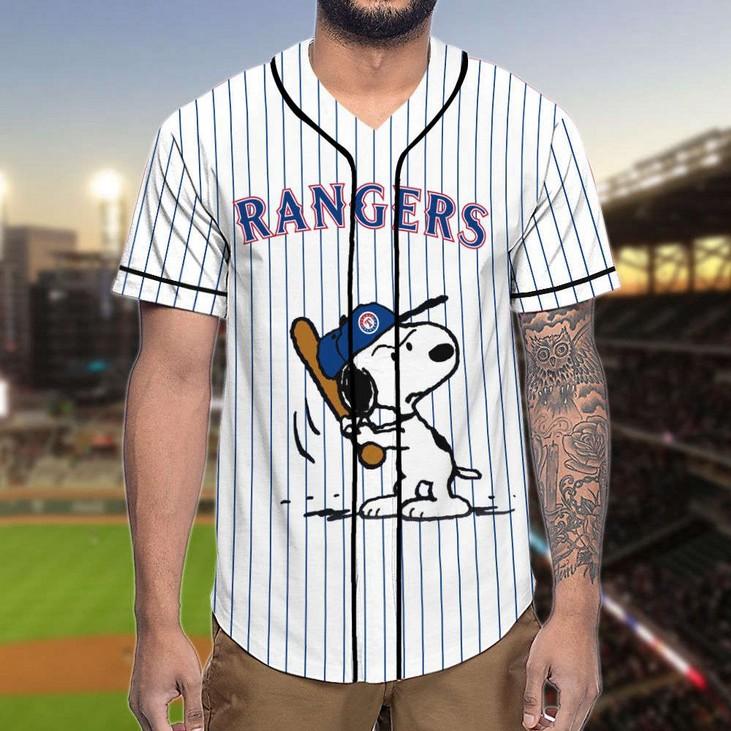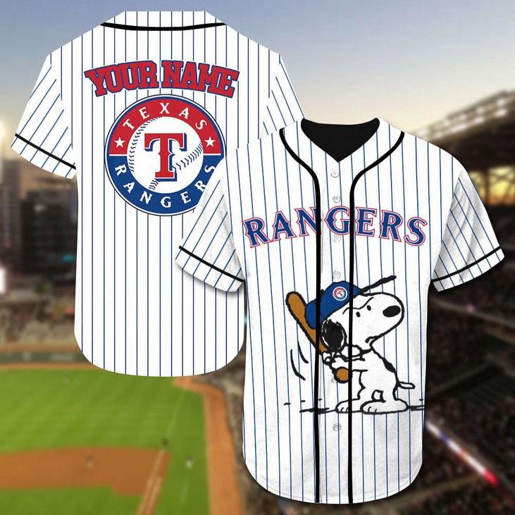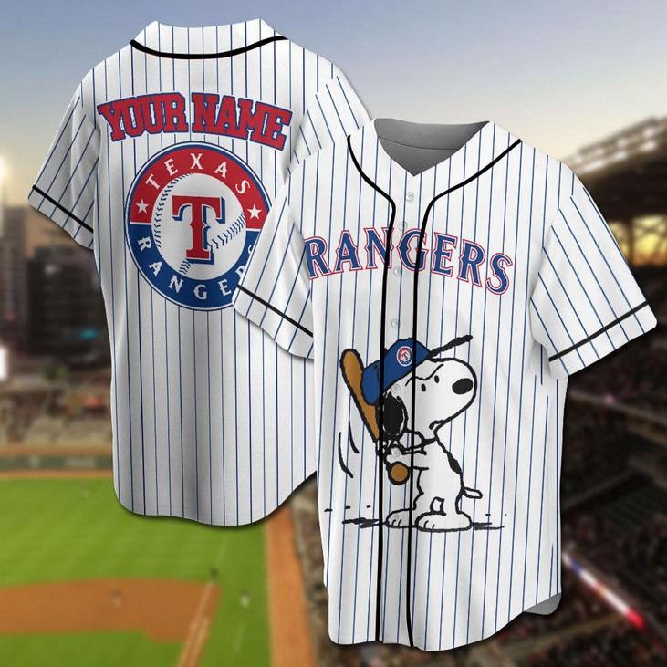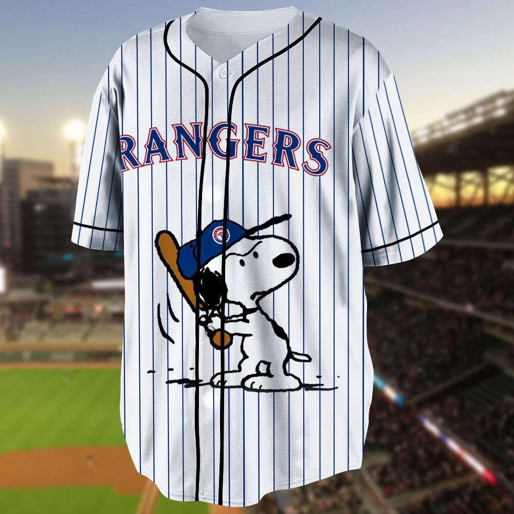 Introducing the Texas Rangers Snoopy MLB Personalized Baseball Jersey - the perfect gift for both women and men! Made from high-quality materials, this jersey showcases the iconic Snoopy design, representing your love for the Texas Rangers. With its personalized touch, you can add your name or favorite player's name to make it truly unique. This jersey offers both comfort and style, allowing you to show off your team spirit in a fashionable way. Whether you're at the game or out and about, this jersey guarantees to turn heads and spark conversations. So why wait? Grab yours today and step into the world of Texas Rangers with Snoopy by your side!