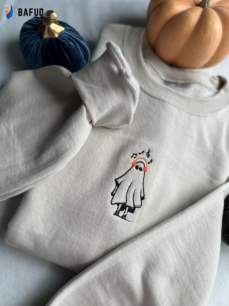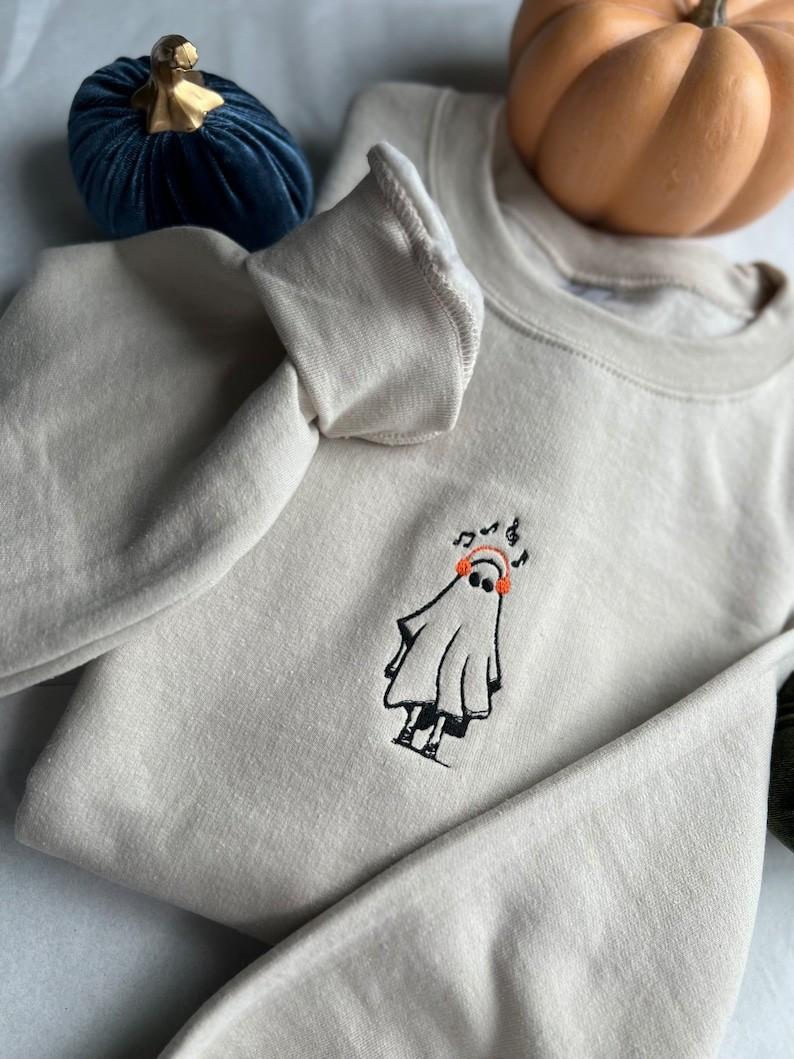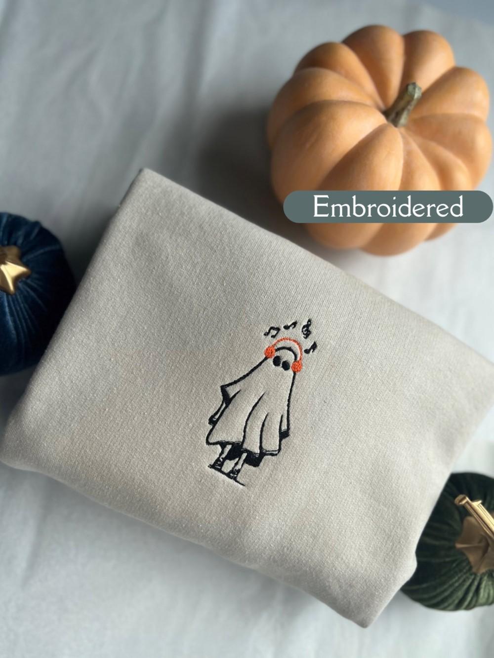 Music Ghost Embroidered Crewneck T-Shirt, Sweatshirt for Men Women Sweatshirt, Gift for Men Women