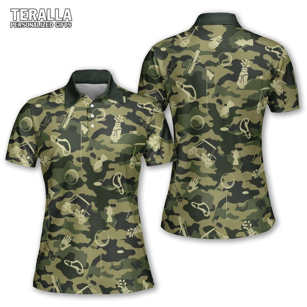 Both shirts are tailored to fit the female golfer's body, providing a flattering silhouette that enhances your confidence on the course. The Green Camouflage Golf Set combines style and functionality, allowing you to effortlessly transition from the fairway to the clubhouse in a fashionable manner. With our Green Camouflage Golf Set, you don't have to compromise on comfort or style. Experience the ultimate combination of performance and aesthetics, and be the envy of your fellow golfers. Elevate your game and make a lasting impression with this stunning golf set. Order yours today!