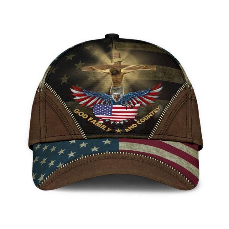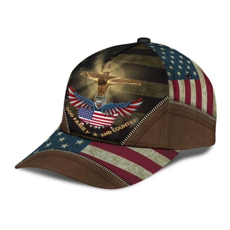 Introducing our Jesus, God, Family And Country Classic Cap All Over Print - a timeless accessory that combines faith, patriotism, and family values in one stylish design. This cap is perfect for those who want to showcase their beliefs and love for their country with pride.