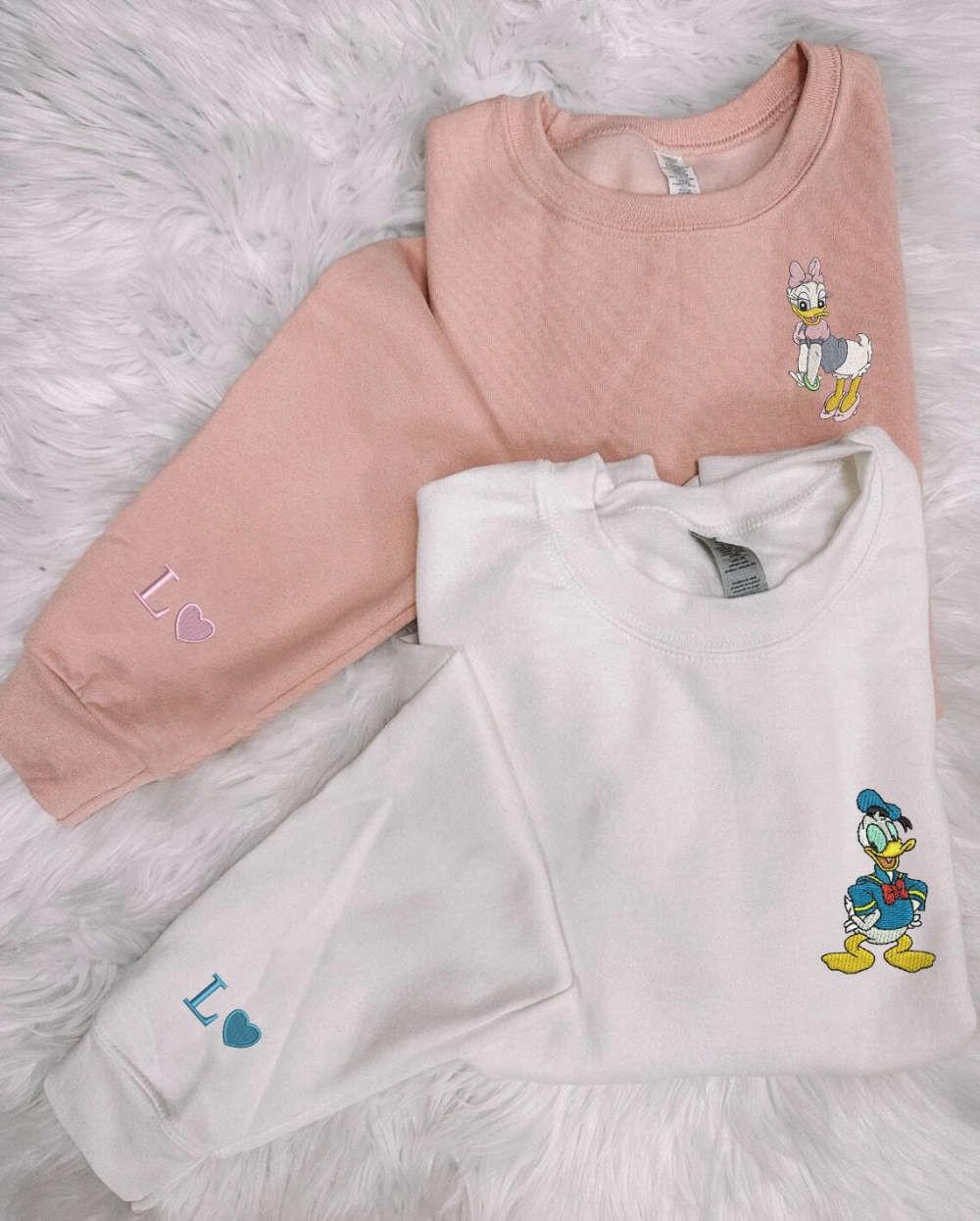 Donald & Daisy Duck Embroidered Sweatshirt: Matching Couple Shirts for Valentine s - Cartoon Embroidery Perfect Gift!