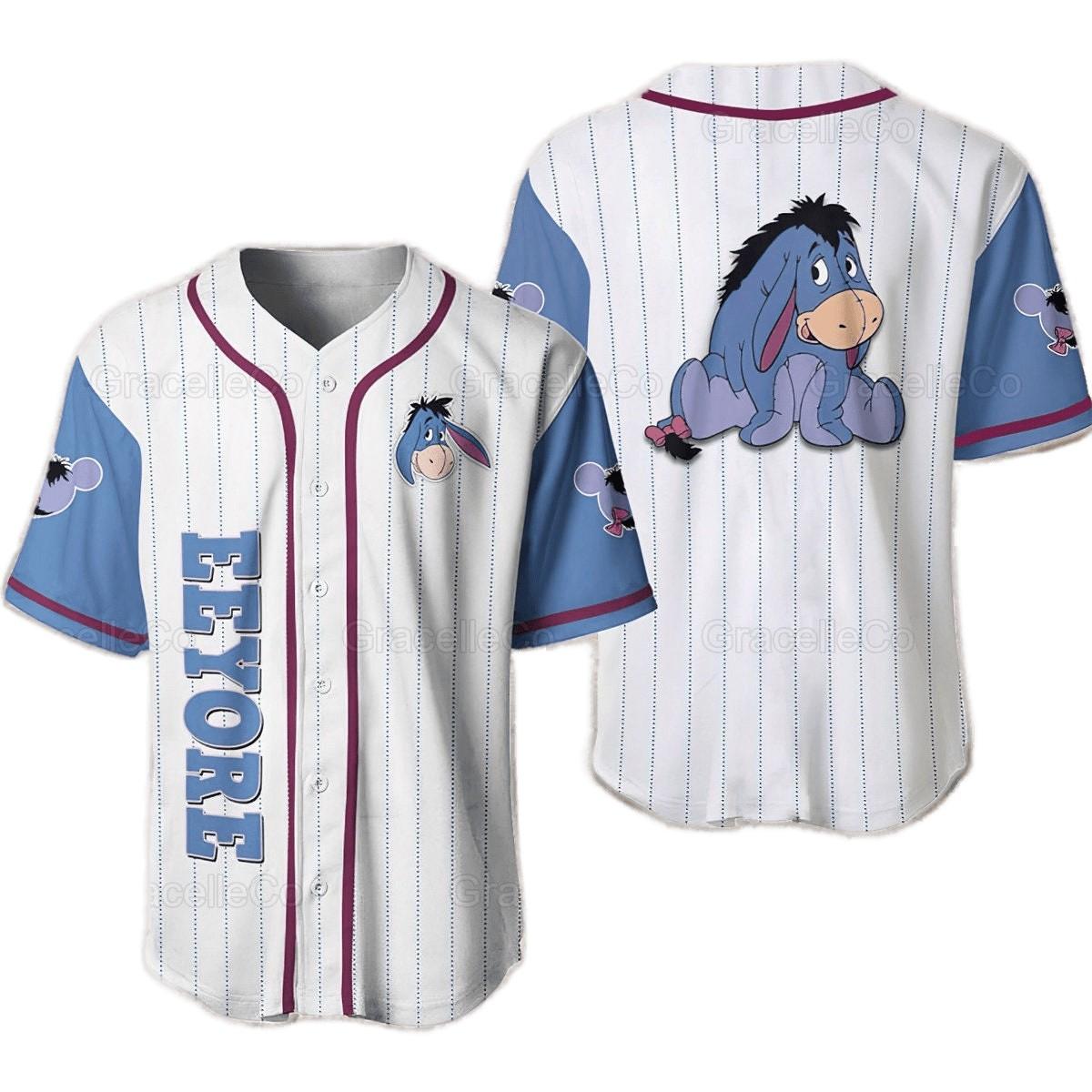 Winnie The Pooh Jersey Disney Winnie The Pooh Cute Eeyore Character White Blue Jersey Shirt Winnie The Pooh Baseball Jersey Disney Baseball Jersey Information