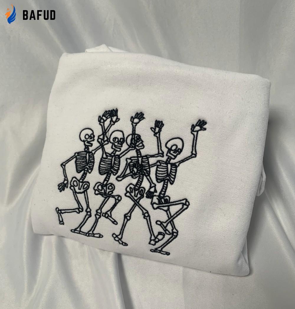 Dancing Skeletons Embroidered Crewneck T-Shirt, Sweatshirt for Men Women Crewneck, Gift for Men Women