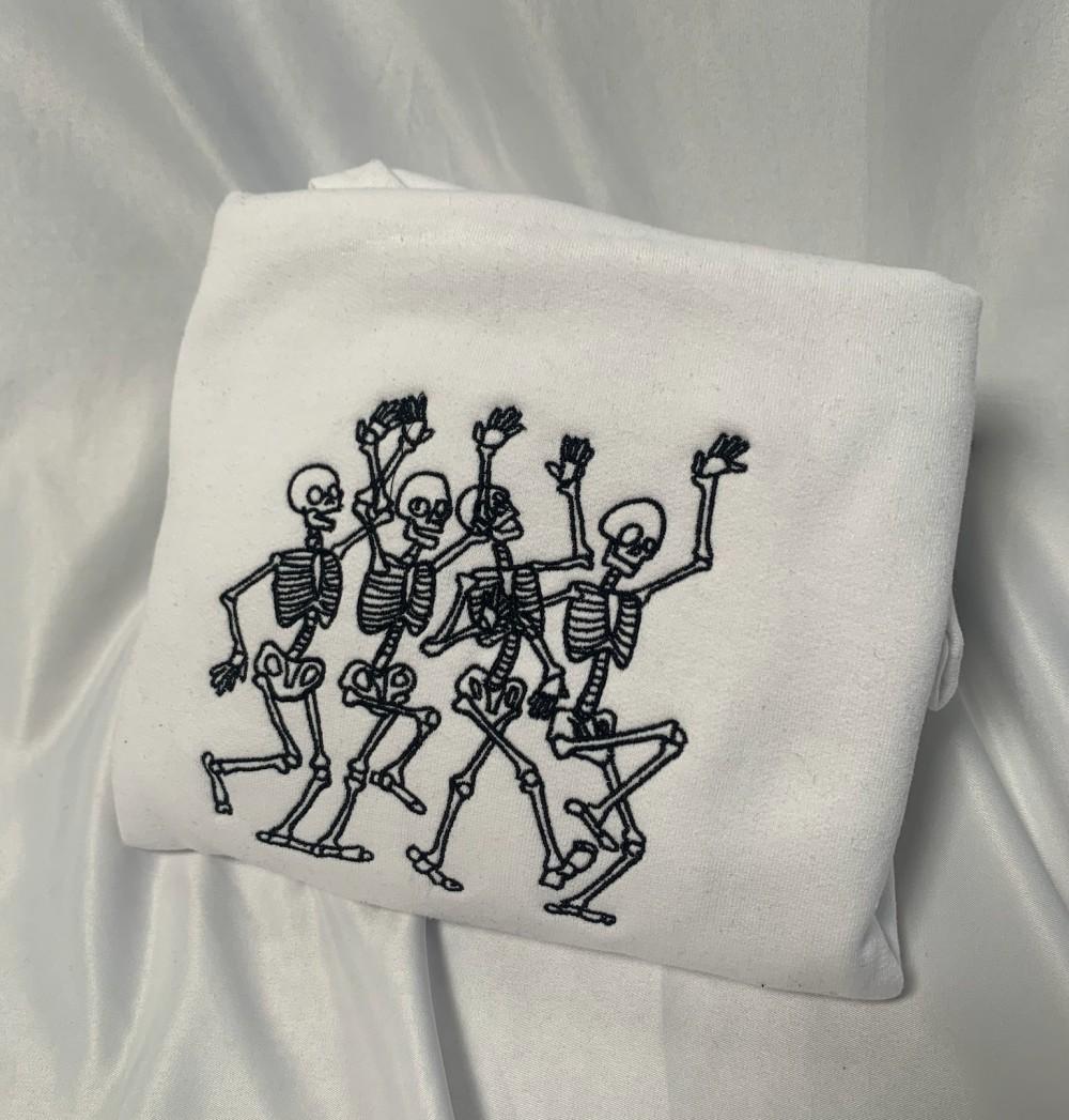 Dancing Skeletons Embroidered Crewneck TShirt, Sweatshirt for Men Women Crewneck, Gift
