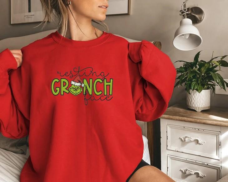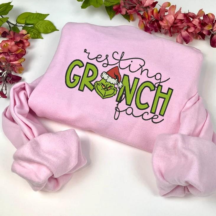 Resting Grinch Face Embroidered Crewneck T-Shirt, Sweatshirt for Men Women Sweatshirt, Gift for Men Women BUY IT HERE