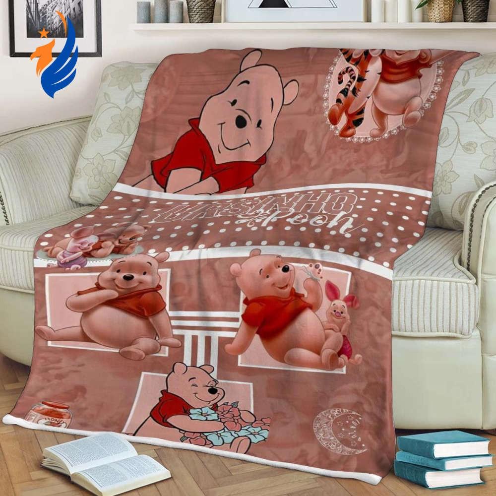 Introducing the Winnie The Pooh Disney Fans Sherpa Fleece Quilt Blanket BL2363, the perfect addition to your Disney collection! Made with ultra-soft Sherpa fleece, this blanket guarantees unparalleled coziness and warmth. Featuring a charming Winnie The Pooh design, it captures the essence of childhood nostalgia and brings joy to any Disney fan. Measuring a generous size, it is perfect for snuggling up on the couch or adding a touch of whimsy to your bedroom decor. The highquality materials ensure durability and long-lasting use. This blanket not only provides comfort but also serves as a delightful piece of Disney memorabilia, making it an ideal gift for loved ones. Embrace the magic of Winnie The Pooh with this enchanting blanket and create memories that will last a lifetime. Get yours now and let the adventures begin!