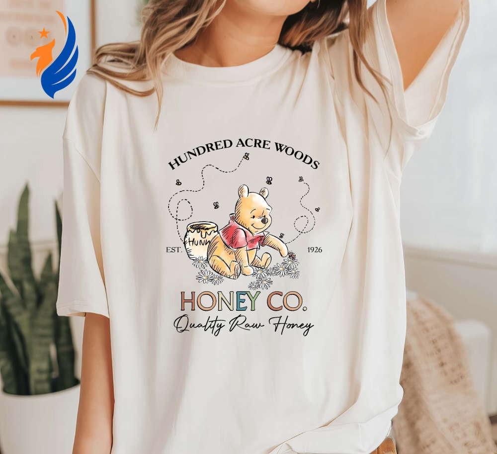 The Vintage Hundred Acre Woods shirt takes you on a nostalgiafilled journey back to the enchanting world of Winnie the Pooh. Made with soft and durable fabric, this Honey Co shirt showcases a retro design that celebrates the beloved character's establishment in 1926. The Classic Pooh Bear crewneck offers a cozy fit and features intricate detailing. Crafted with Comfort Colors material, this shirt ensures maximum comfort and breathability. Each shirt brings a touch of timeless charm and captures the essence of childhood wonder. Experience the joy of reliving cherished memories with these vintage-inspired shirts.
