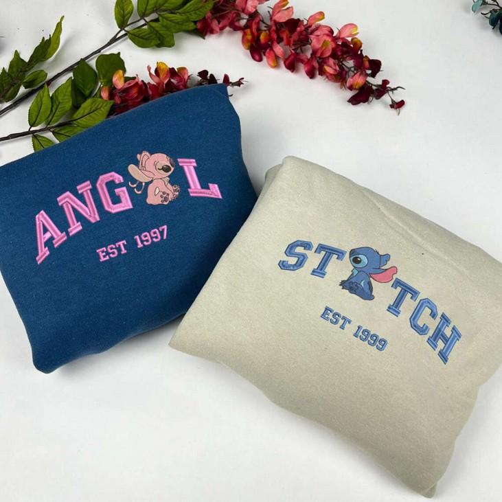 Introducing our adorable Stitch and Angel Embroidered Sweatshirt, the perfect addition to your wardrobe! Made with high-quality materials, this sweatshirt features a beautiful embroidered design of the lovable Disney characters, Stitch and Angel. With its cozy fit and soft fabric, it provides ultimate comfort and warmth.