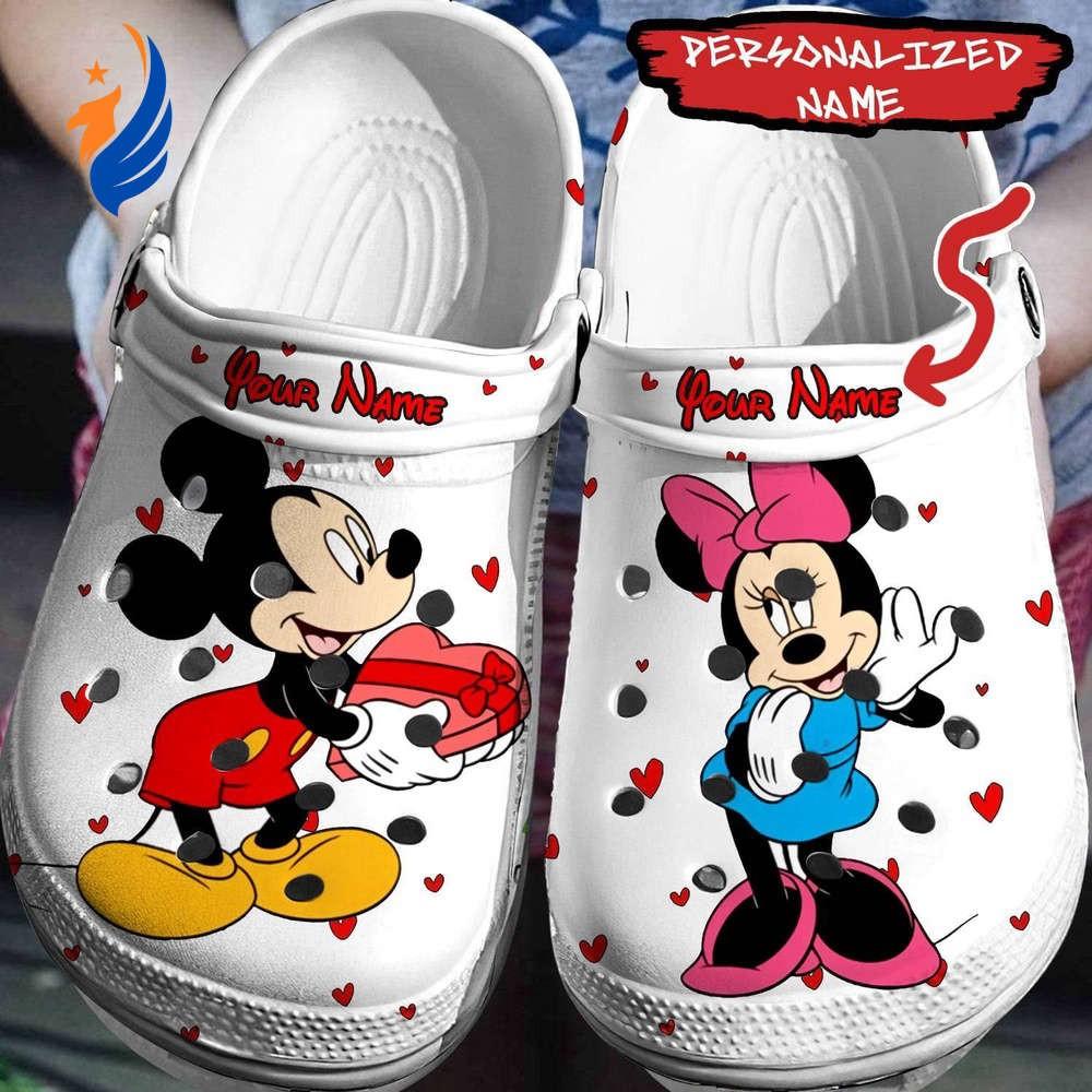Featuring a unique 3D design of Mickey Mouse and Minnie Mouse, these Crocs shoes capture the essence of the beloved characters in stunning detail. Each pair is personalized with your name or initials, adding a touch of individuality and making them truly one-of-a-kind.