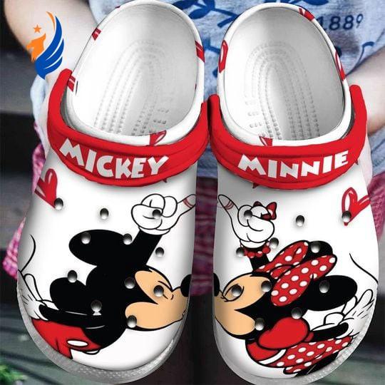 Mickey & Minnie W Heart Pattern Crocs-Slippers Classic Clogs Shoes In White & Red