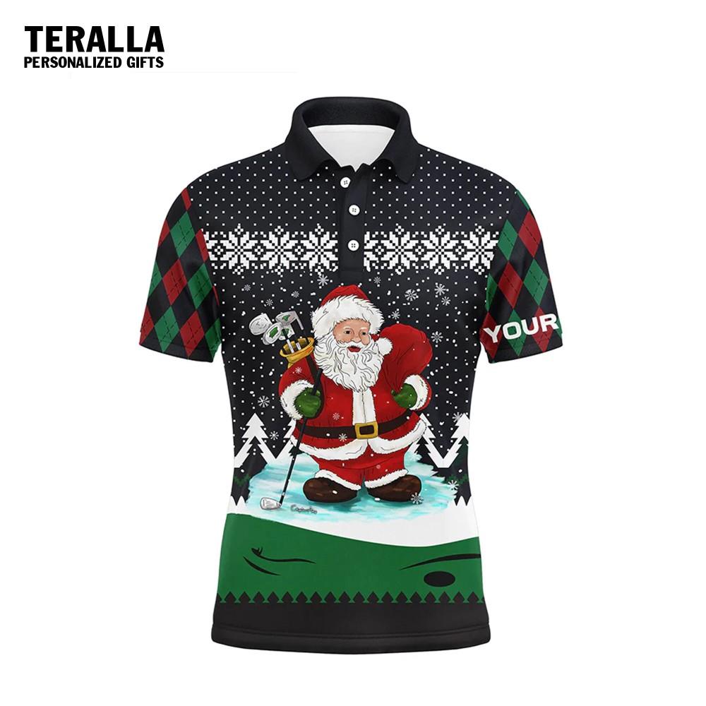 Custom Name Golf Santa Argyle Pattern Christmas Sleeveless, Short Sleeve Polo Shirt For Women And Men