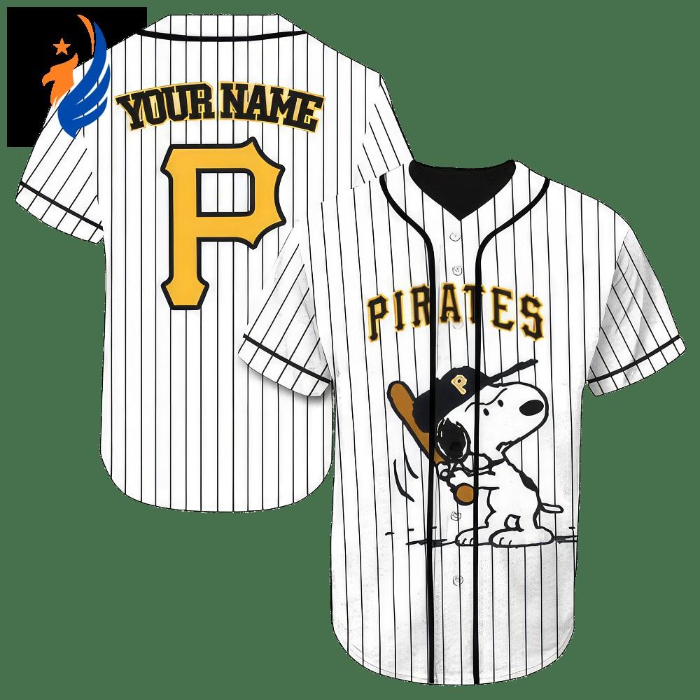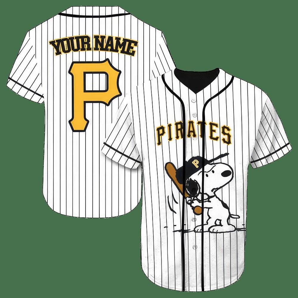 Introducing the Pittsburgh Pirates Snoopy Name Personalized Baseball Jersey Shirt FV256! This one-of-a-kind jersey is the perfect gift for both men and women who are die-hard Pirates fans. Made with high-quality materials, it offers unmatched comfort and durability. The jersey features a unique design with Snoopy, adding a touch of playfulness to your game-day attire. With personalized name options, you can make it truly your own. Whether you're wearing it to the stadium or showing off your team spirit at home, this jersey is a must-have for any Pirates supporter. Get yours today and showcase your love for the team in style!