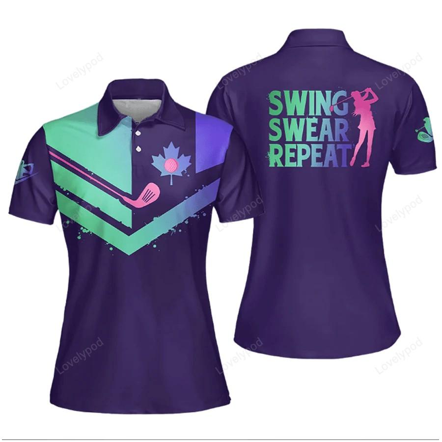 Introducing our Gradient Swing Swear Repeat Flag Canada Swing Swear Repeat Golfer Gift Color Sleeveless Polo Shirt, the ultimate fusion of style and functionality for the avid golfer! Designed with meticulous attention to detail, this polo shirt is sure to elevate your golfing experience to new heights.