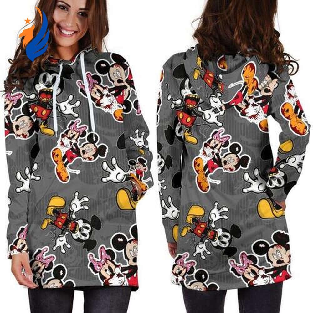 Introducing our Mickey Hoodie Dress, a perfect blend of comfort and style for women! This sweater dress showcases a unique and vibrant Mickey Mouse print, adding a touch of playfulness to your wardrobe. Made from high-quality materials, it offers exceptional softness and durability.