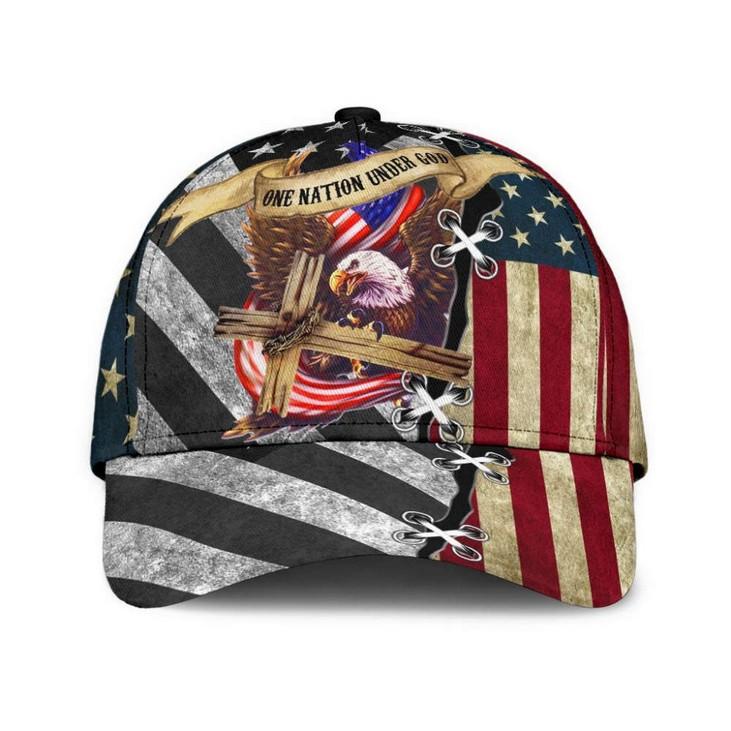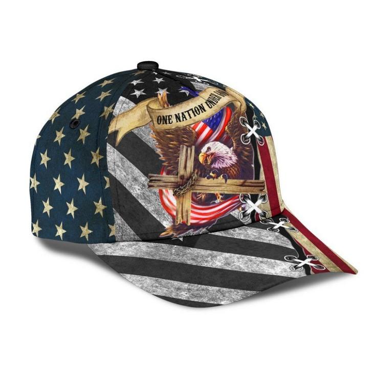 With its versatile design, our Jesus One Nation Under God American Flag Classic Cap All Over Print is suitable for a variety of occasions. Whether you're attending a church service, showing your patriotism at a sports event, or simply adding a touch of faith to your everyday outfits, this cap is the perfect accessory.