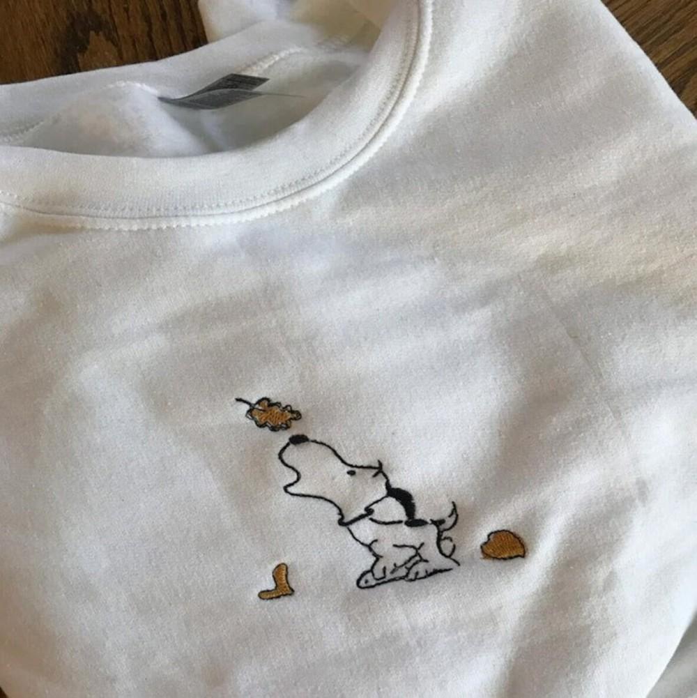 Snoopy Autumn Leaves Embroidered Crewneck TShirt, Sweatshirt for Men Women Shirt, Gift for Men Women
