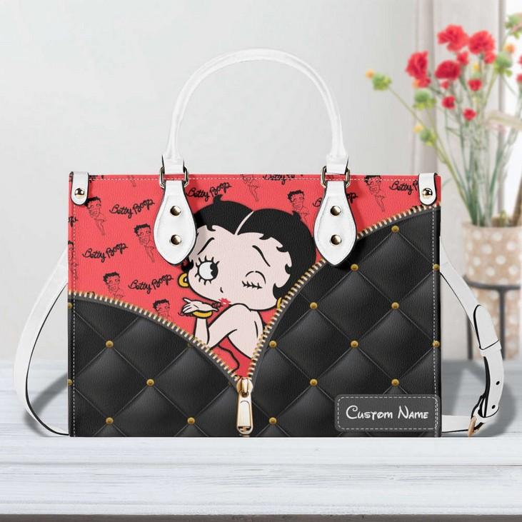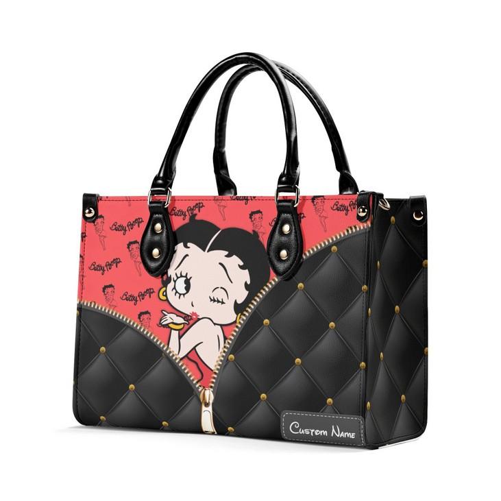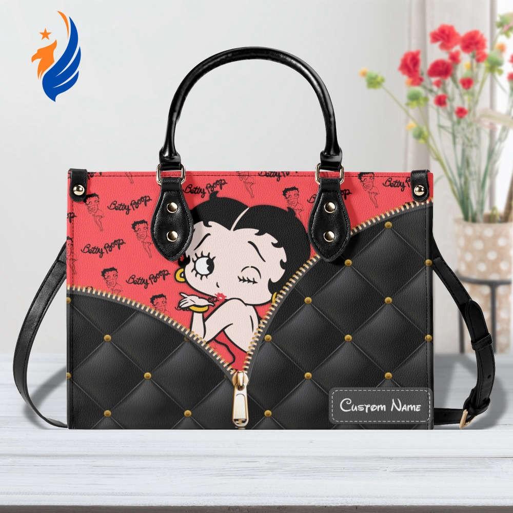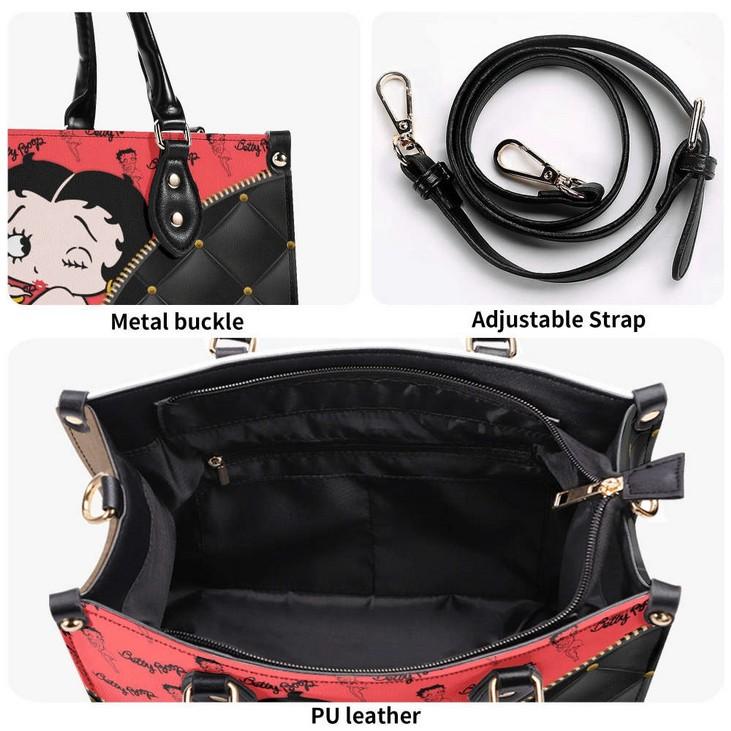 Introducing the Betty Boop Leather Handbag, a must-have accessory for all Betty Boop enthusiasts! Made with the finest quality leather, this handbag exudes elegance and style. Its spacious interior allows you to carry all your essentials, while the sturdy handles ensure comfort and durability. With its custom design, this handmade bag is a unique fashion statement that will turn heads wherever you go. The vintage touch adds a touch of nostalgia, making it a perfect choice for any occasion. Our Betty Boop Women Bags Purses are not just about fashion, but also practicality and functionality. Invest in this timeless piece and experience the value it adds to your wardrobe. Embrace the Betty Boop Lover's Handbag and stand out from the crowd!
