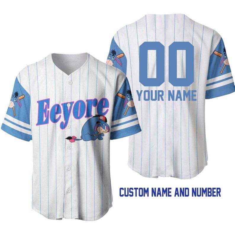 Personalized Eeyore Donkey Winnie The Pooh All Over Print Pinstripe Baseball Jersey Information