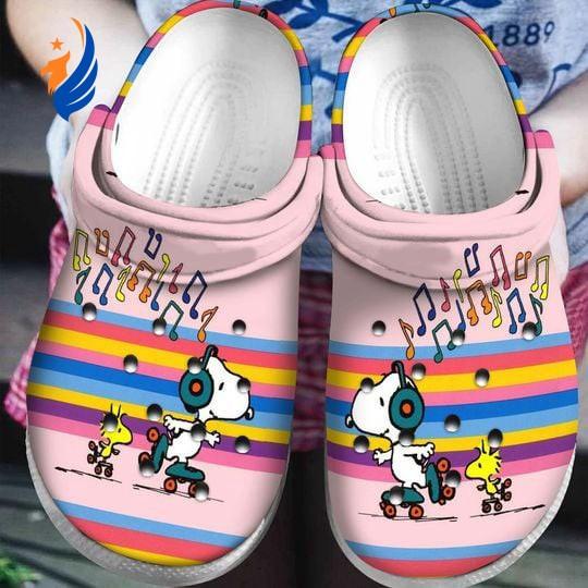 Information About Snoopy Musical Note Pattern Crocs-Slippers-Slippers Classic Clogs Shoes In Pink & Blue