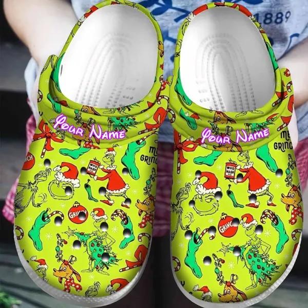 Personalized Unisex Classic Grinch Christmas Clogs, Funny And Safe Clogs For Kids And Adults