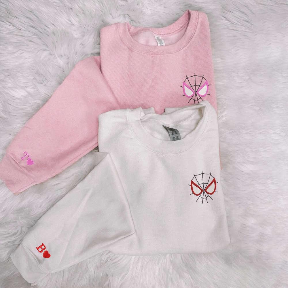 Spider Couple Embroidered Sweater - Trending Cartoon Sweatshirt for Valentine s Day with