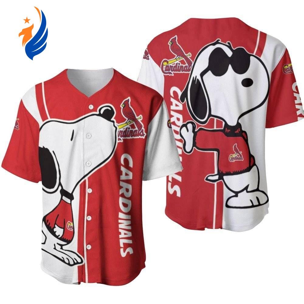Introducing our St Louis Cardinals Snoopy Lover Printed Baseball Jersey - the ultimate gift for both men and women! This officially licensed jersey showcases the perfect blend of your favorite MLB team and the iconic Snoopy. Made with premium materials, it guarantees utmost comfort and durability. Its vibrant colors and detailed design make it a standout piece for any Cardinals fan. Whether you're cheering from the stands or watching the game at home, this jersey will make you feel like a true part of the team. Show off your love for the Cardinals and Snoopy with this unique and stylish jersey that is sure to turn heads and spark conversations. It's not just a jersey; it's a statement piece that embodies your passion and dedication. This is the ideal gift for any die-hard Cardinals supporter, making it a must-have for any occasion. Get yours now and show the world your true fandom! St Louis Cardinals snoopy lover Printed Baseball JerseyGift for Men Women- Gift for Women Men Information
