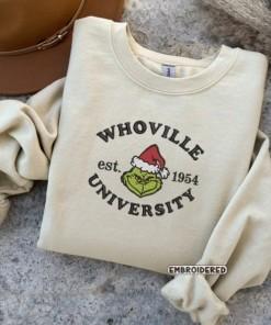 The Christmas Crewneck Whoville University Embroidered Crewneck T-Shirt is the perfect festive attire for men and women. Made with high-quality materials, this sweatshirt offers both comfort and style. The intricate embroidery adds a touch of elegance, making it a standout piece. Whether you're attending a holiday party or just spreading Christmas cheer, this sweatshirt is sure to make a statement. It's also a great gift option for your loved ones. Get into the holiday spirit with this cozy and fashionable sweatshirt!