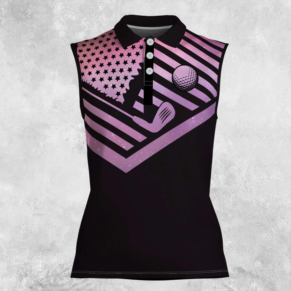 Introducing the Swing Swear Repeat Women Golf Team Galaxy Pattern 3D Women Sleeveless Polo, available in sizes XS-4XL. Elevate your golf game with this stylish and comfortable polo designed specifically for women golfers.