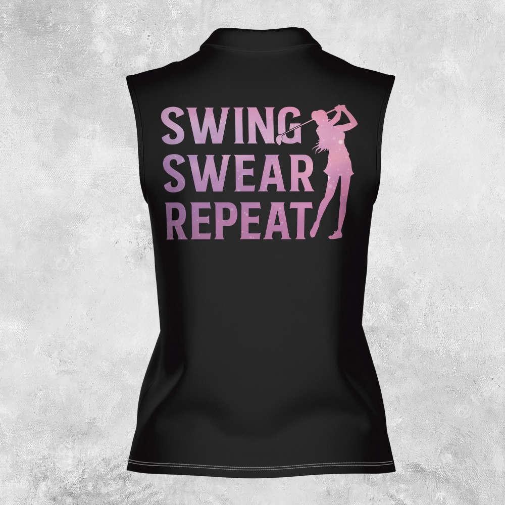 Elevate your golfing style with the Swing Swear Repeat Women Golf Team Galaxy Pattern 3D Women Sleeveless Polo. It's time to make a statement on the golf course - swing, swear, and repeat!
