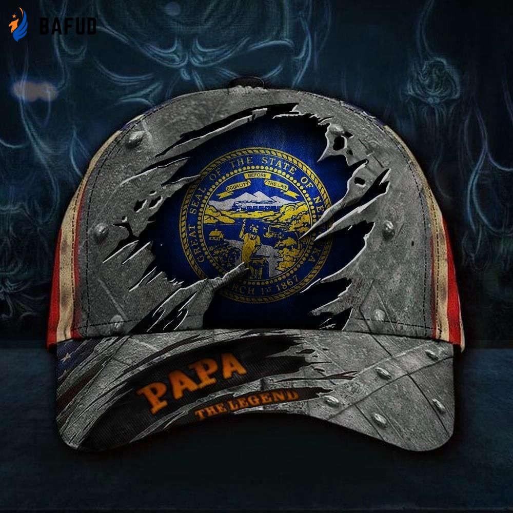 Introducing the Nebraska Papa The Legend 3D Hat, a vintage USA flag classic cap that is the epitome of coolness and the perfect gift for any dad from his loving son. This hat is not just an accessory, but a symbol of pride, honor, and patriotism.