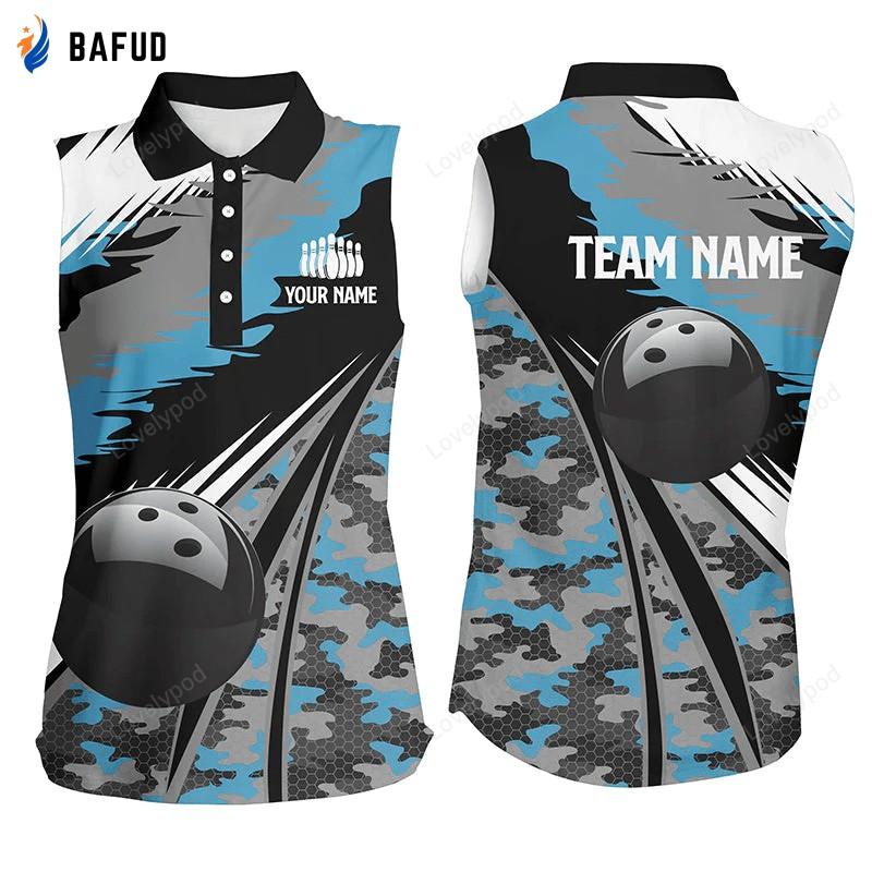Introducing our Women Bowling Sleeveless Polo Shirts Custom Black Ball Blue Camo Bowling Team, the perfect gift for passionate bowlers! Made with utmost attention to detail, these shirts boast a unique combination of style and functionality.