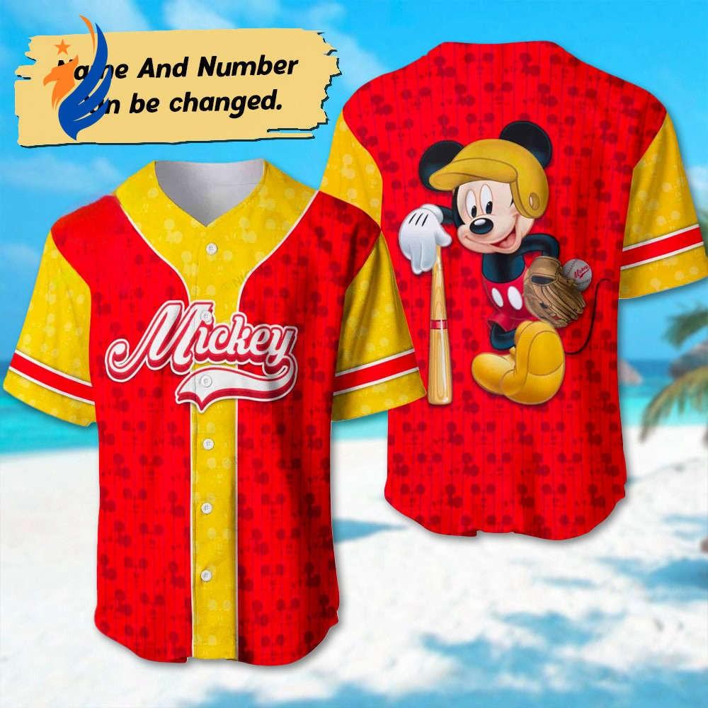 Introducing our Custom Mickey Mouse Baseball Jersey, a musthave for all Disney and sports enthusiasts! This vibrant and highquality jersey showcases Mickey in his classic baseball pose, adding a touch of magic to your game day attire. Made from premium materials, it ensures utmost comfort and durability. Perfect for both casual wear and team sports, this jersey allows you to show off your love for Mickey Mouse and your favorite sport in style. Whether you're hitting the ballpark or cheering on your team, you'll stand out from the crowd with this unique jersey. It also serves as a cherished memento from your unforgettable trip to the Magic Kingdom. Surprise your loved ones with this perfect gift for any sport lover or make your kid's birthday extra special with this delightful Mickey Mouse jersey. Embrace the joy, excitement, and nostalgia that Mickey brings, and relish the value this exceptional product adds to your sporting adventures.