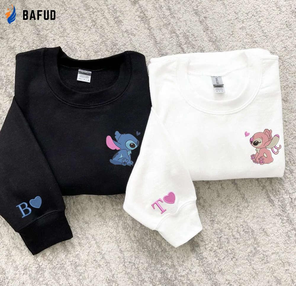 Stitch and Angel Embroidered Sweatshirt: Couple