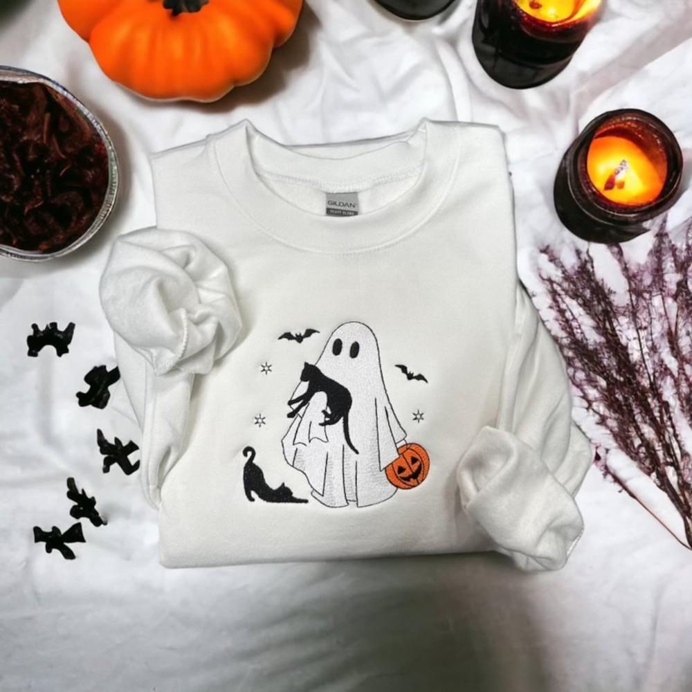 Halloween Cute Black Cat Embroidered Crewneck T-Shirt, Sweatshirt for Men Women Crewneck TShirt, Sweatshirt for Men Women