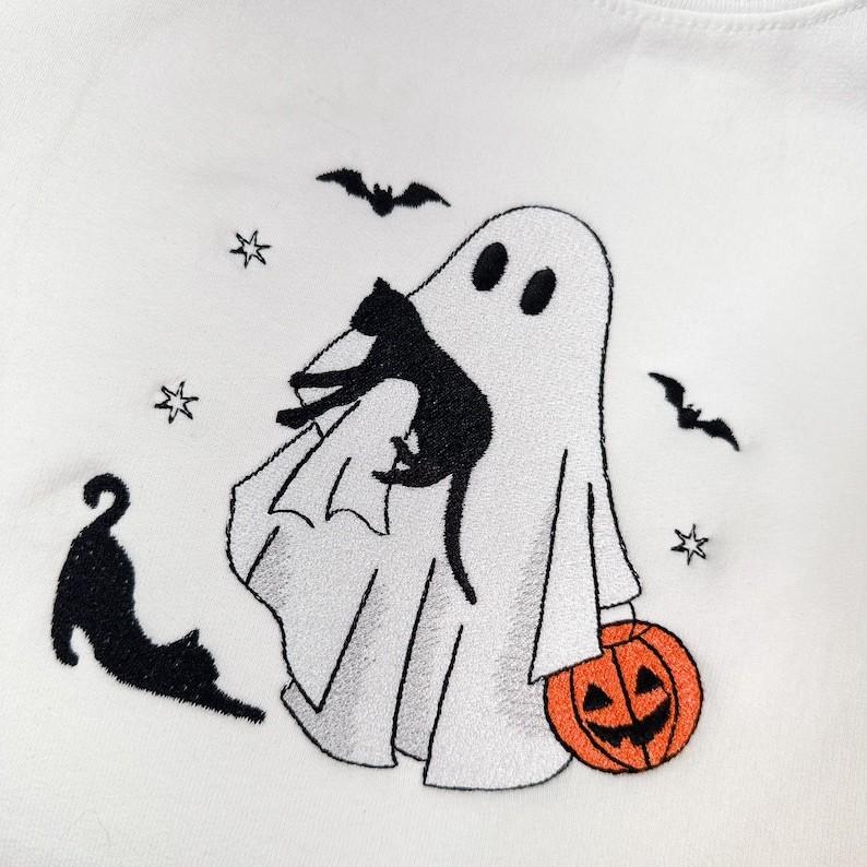 Halloween Cute Black Cat Embroidered Crewneck TShirt, Sweatshirt for Men Women Crewneck T-Shirt, Sweatshirt for Men Women