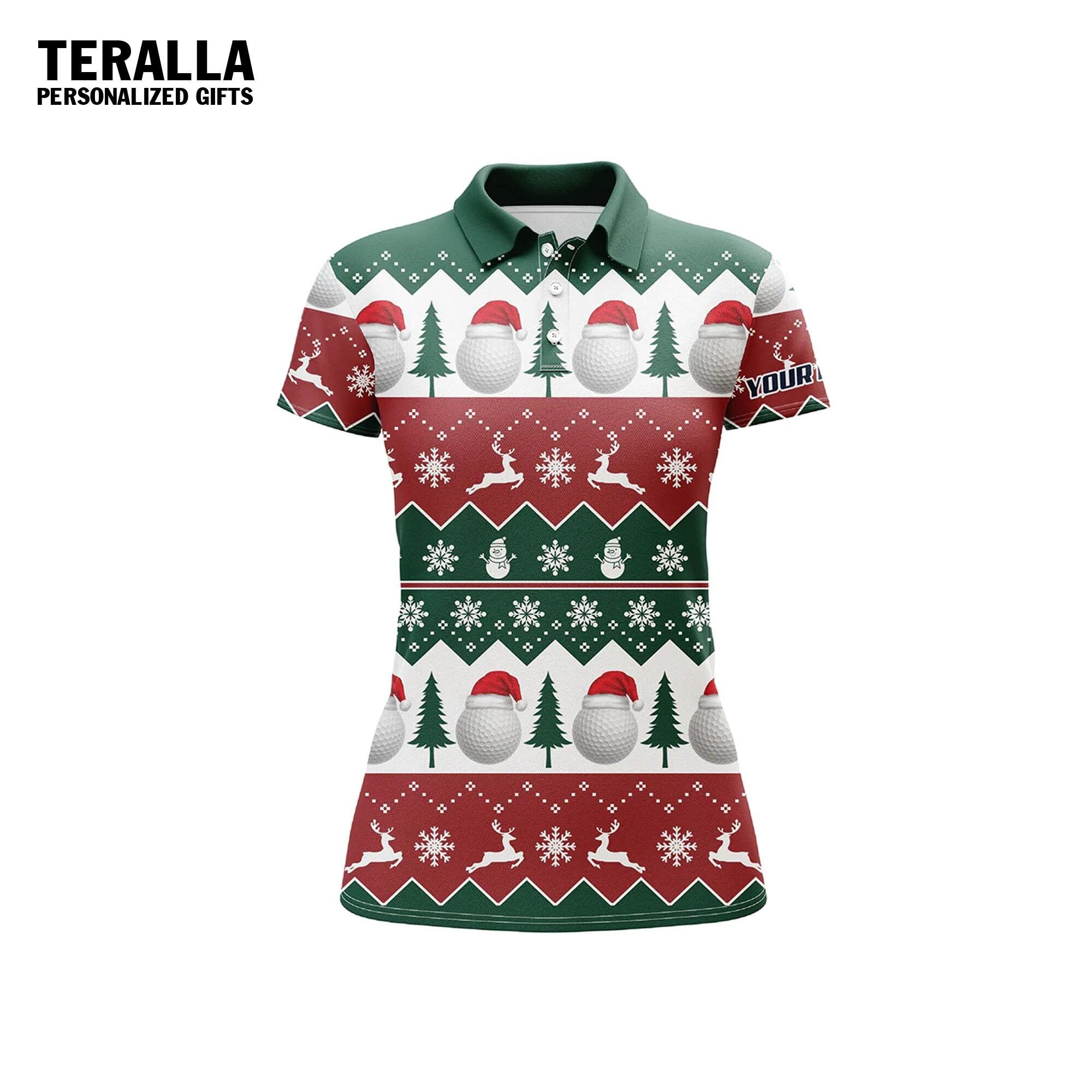 Not only does our Custom Name Golf Christmas Tree Snow Polo Shirt offer style, comfort, and performance, but it also makes for a perfect holiday gift. Surprise the golf-loving women in your life with a personalized polo shirt that showcases their unique style and passion for the game. It's a gift that will be cherished and worn with pride.