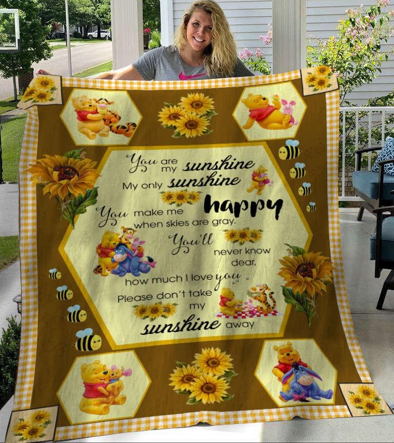 Introducing the Winnie The Pooh My Sunshine Fleece Blanket, Sherpa Blanket! Embrace the warmth and comfort of this delightful blanket featuring everyone's favorite bear, Winnie the Pooh. Made with high-quality fleece and a luxuriously soft sherpa lining, this blanket is perfect for cozying up on chilly nights. Its generous size ensures complete coverage, whether you're snuggled up on the couch or enjoying a picnic in the park. With its adorable design and vibrant colors, this blanket will bring joy and cheer to any Pooh fan. Not only does it provide exceptional warmth, but it also adds a touch of whimsy to your home decor. Experience the magic of Winnie the Pooh with the My Sunshine Fleece Blanket, Sherpa Blanket – the perfect companion for all your cozy moments. Get yours today and let the charm of Pooh brighten up your day!