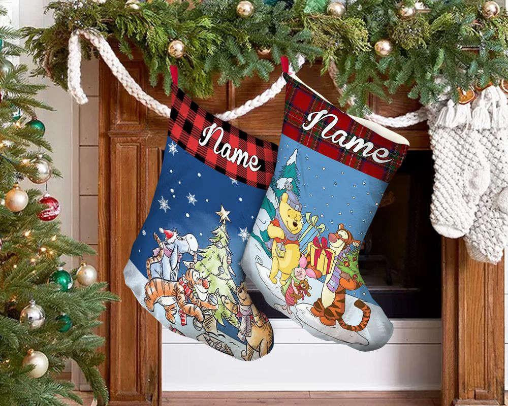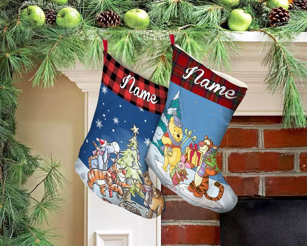 Introducing our Custom Name Winnie The Pooh Christmas Stocking, featuring Pooh with his beloved friends! Made with meticulous craftsmanship, this stocking brings the magic of the Hundred Acre Wood to your holiday decor. Personalize it with your name for an extra special touch. Crafted with high-quality materials, it is both durable and luxurious. The vibrant colors and intricate details add a festive charm to any fireplace or mantel. Hang it up and let it become a cherished part of your family's Christmas tradition. This stocking is not only a delightful decoration, but also a functional piece to hold all your small gifts and surprises. Bring joy and excitement to your loved ones' faces as they discover what Pooh and his friends have left for them. With our Custom Name Winnie The Pooh Christmas Stocking, create a magical atmosphere filled with warmth, love, and the spirit of Christmas for years to come. An unique stocking also taps into our children’s sensory memory of exploring a beautiful stocking filled with little surprises.