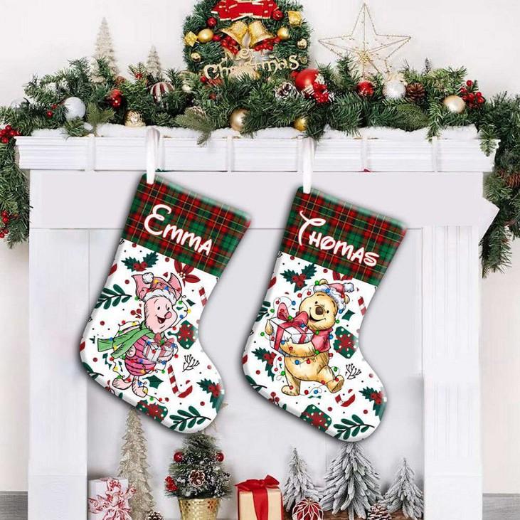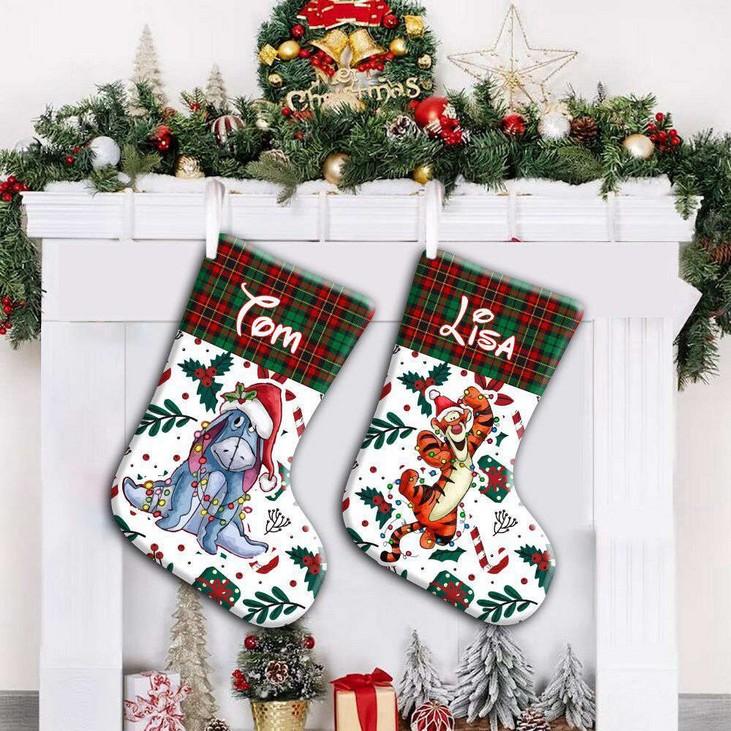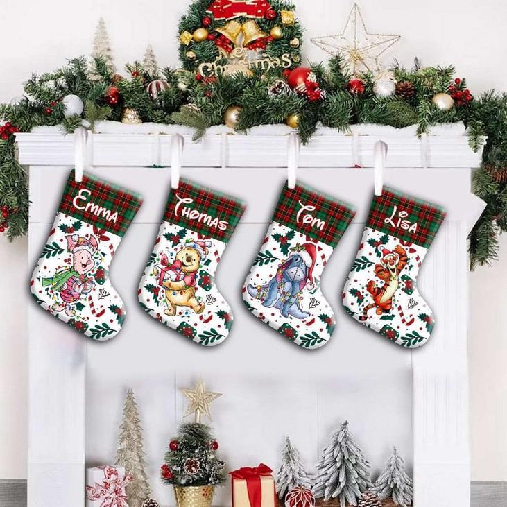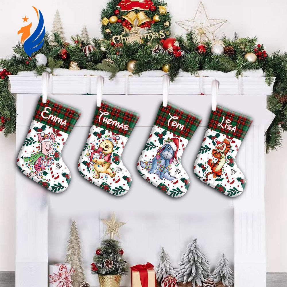 Disney Christmas Stocking, the perfect addition to your family's holiday traditions. Made with love and attention to detail, this stocking features your favorite Disney characters - Winnie The Pooh, Piglet, Tigger, and Eeyore - all dressed up for Christmas. Our Christmas stocking is crafted from high-quality materials, ensuring durability and longevity. The personalized touch adds a special charm, making it a cherished keepsake for years to come. Hang it by the fireplace or decorate your little one's room, creating a festive atmosphere that will delight both children and adults alike.