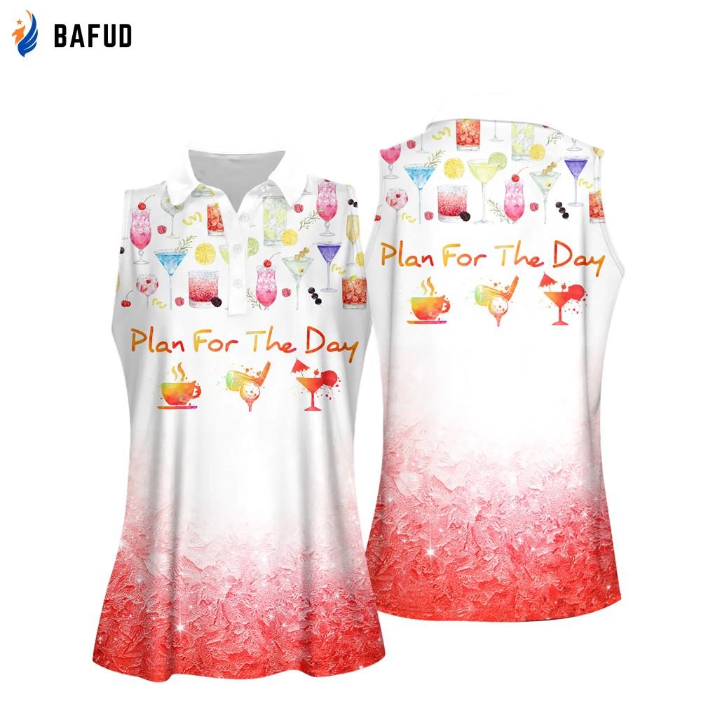 Golf And Drinking Women Sleeveless Athleisure Polo Shirt, Plan For The Day Coffee Golf Cocktail Polo Shirt - Gift For Mother's Day, Golfers, Female