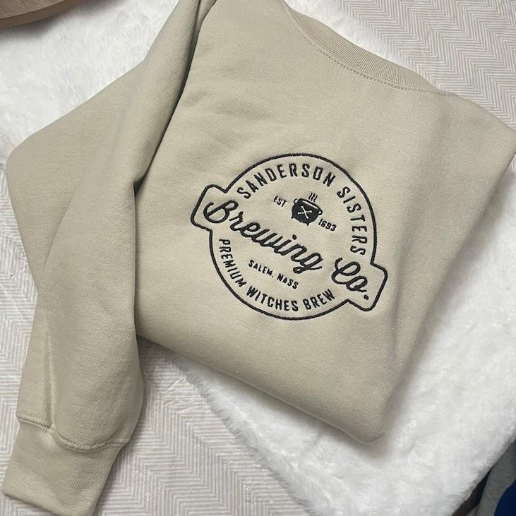 Embroidered Crewneck T-Shirt - a bewitching blend of style and comfort. Crafted with meticulous attention to detail, this shirt features intricate embroidery of the iconic Sanderson Sisters, bringing their enchanting charm to life. Made from premium quality materials, this t-shirt offers a soft and cozy feel, making it perfect for everyday wear. Whether you're a fan of the cult classic movie or simply appreciate unique fashion, this shirt is sure to cast a spell on you. With its versatile design, it can be effortlessly paired with jeans, skirts, or shorts, allowing you to showcase your love for Hocus Pocus in style. It also makes for an ideal gift for fellow Hocus Pocus enthusiasts or Halloween lovers. Elevate your wardrobe and embrace the magic with the Hocus Pocus Brewing Co Sanderson Sisters Embroidered Crewneck TShirt - a must-have addition for any fan!