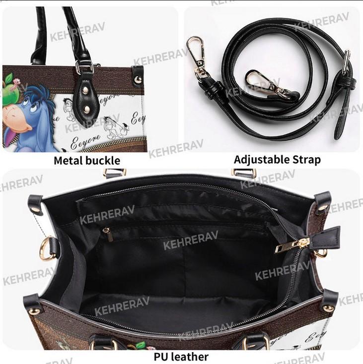 Eeyore Winnie The Pooh Leather Handbag is a must-have accessory for all Eeyore lovers. This custom leather bag is handmade with utmost care and attention to detail. With its spacious interior and multiple pockets, it offers ample storage for all your essentials. The high-quality leather ensures durability, while the adorable Eeyore design adds a touch of whimsy to your outfit. Whether you're a fan of Winnie the Pooh or simply appreciate unique and stylish handbags, this Eeyore Women Bags Purses is the perfect choice. Embrace your love for Eeyore and elevate your style with this one-of-a-kind Eeyore Lover's Handbag.